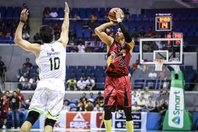 It’s actually Arwind Santos who’s leading the Beermen in shooting from beyond the arc in the season-ending conference where they are gunning for a grand slam.