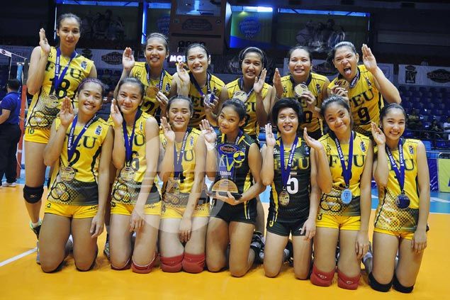 FAR Eastern University downed University of Santo Tomas, 25-16, 25-23, 25-17, on Saturday to bag the bronze medal in the V-League Collegiate Conference at The Arena in San Juan.