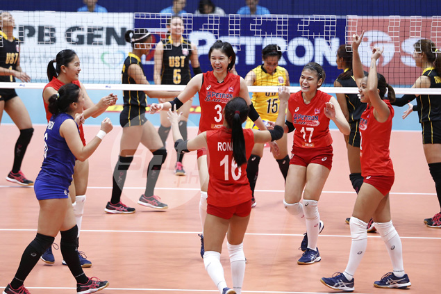 Aiza Maizo-Pontillas delivered 10 points while Remy Palma and import Lindsay Stalzer had eight markers apiece for the Blaze Spikers, who had the luxury of shuffling their personnel to give the college girls a very good fight.